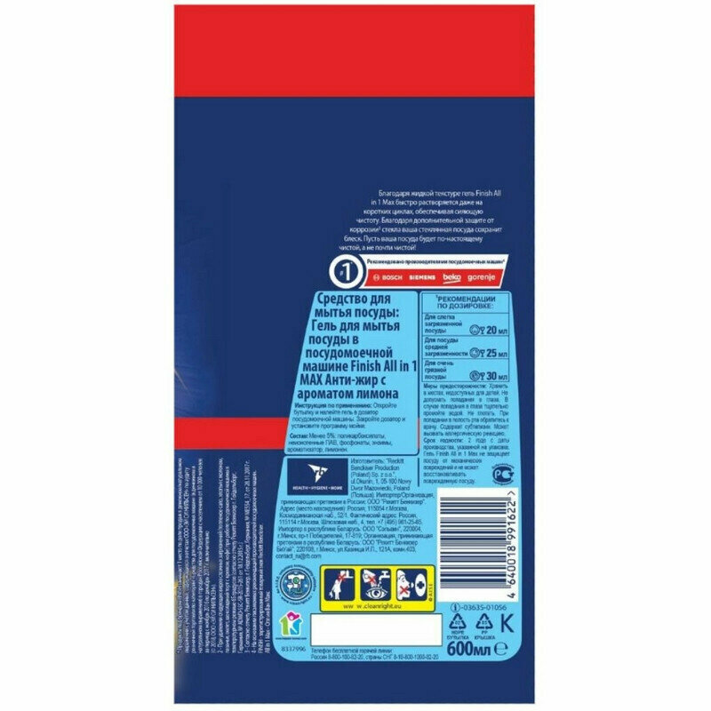 | Комплектация | Гель для ПММ FINISH All in 1 Max Анти-жир с ароматом лимона - 600 мл |