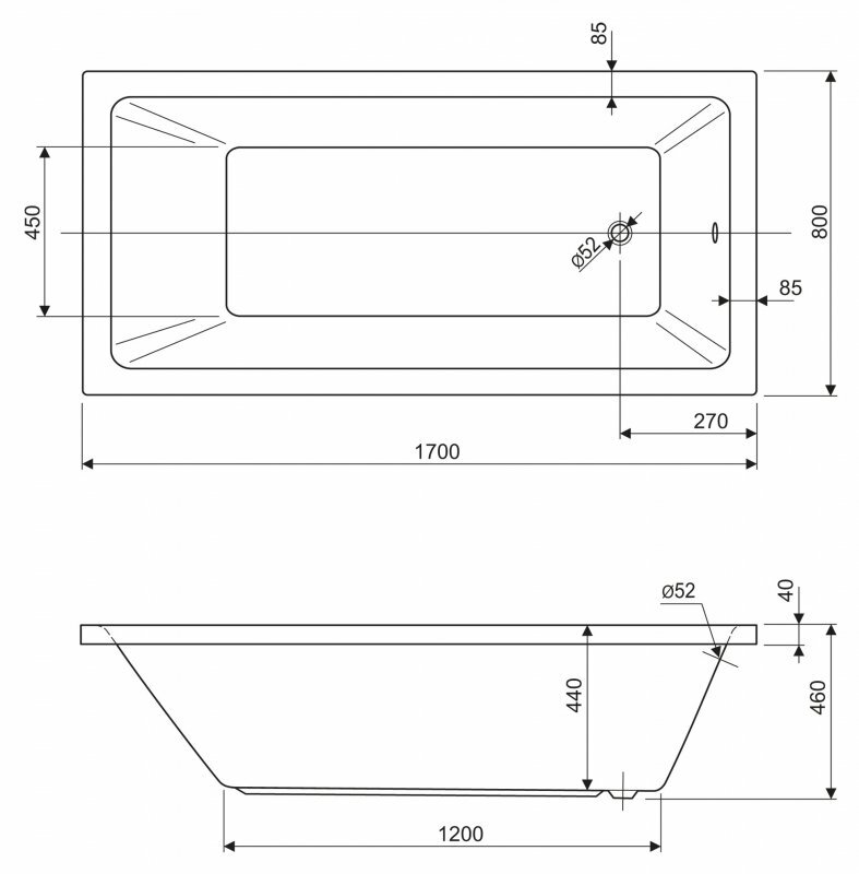 Ванна акриловая Cezares PLANE SOLO-170-80-49-W37 информация: