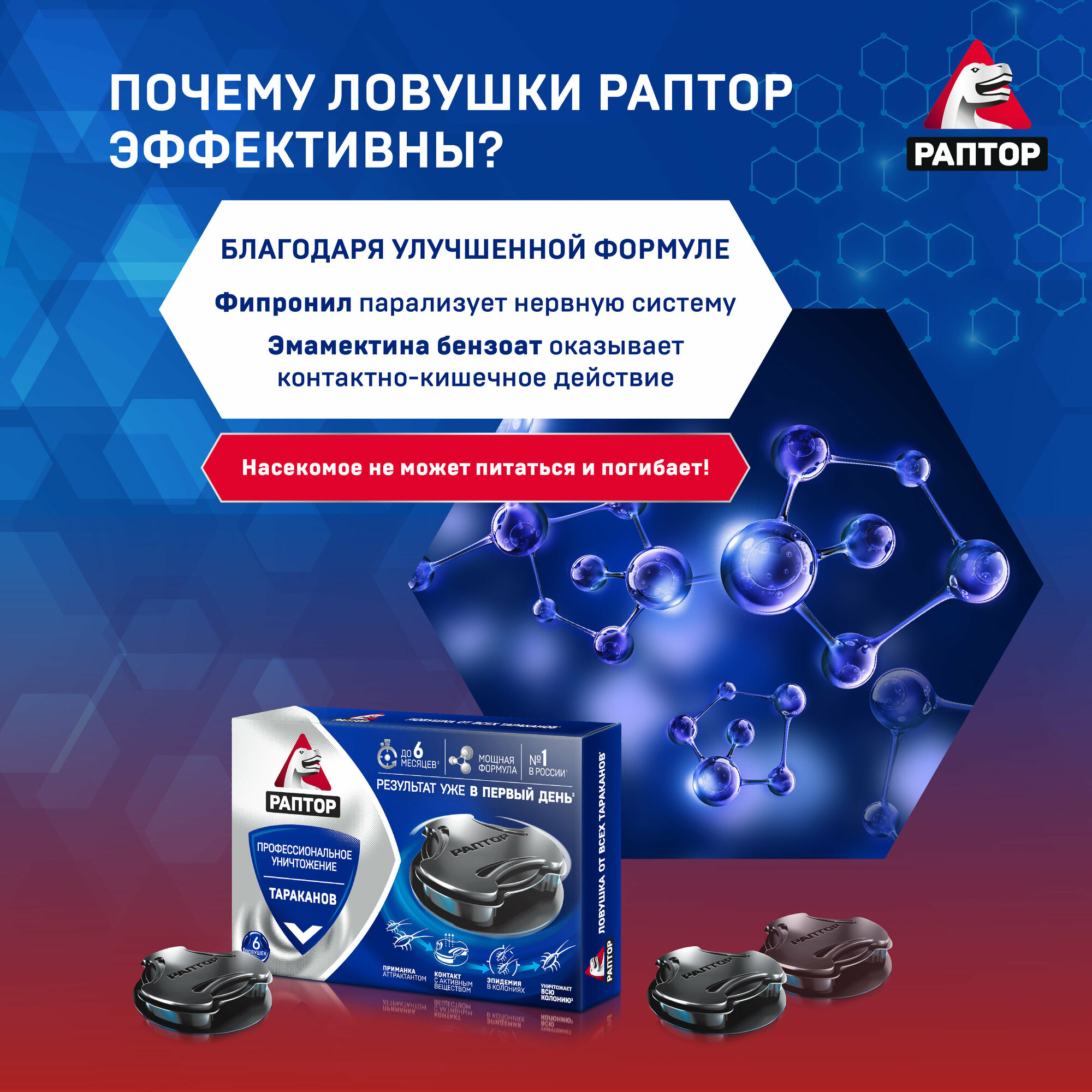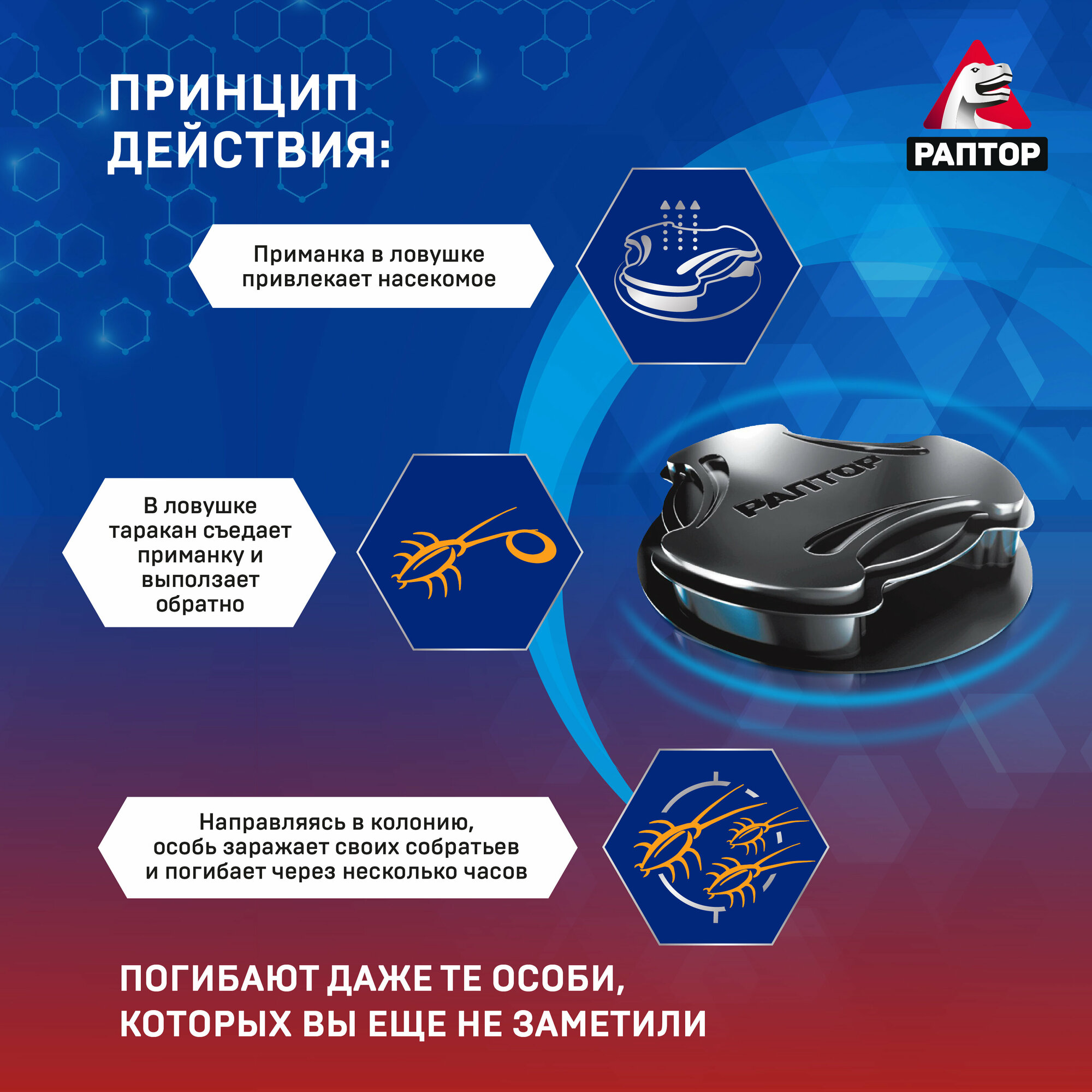 10 цен на Ловушка для тараканов, средство от ползающих насекомых, Раптор, защита до 6 мес, отрава, 18 штук (3 упаковки по 6 шт.)