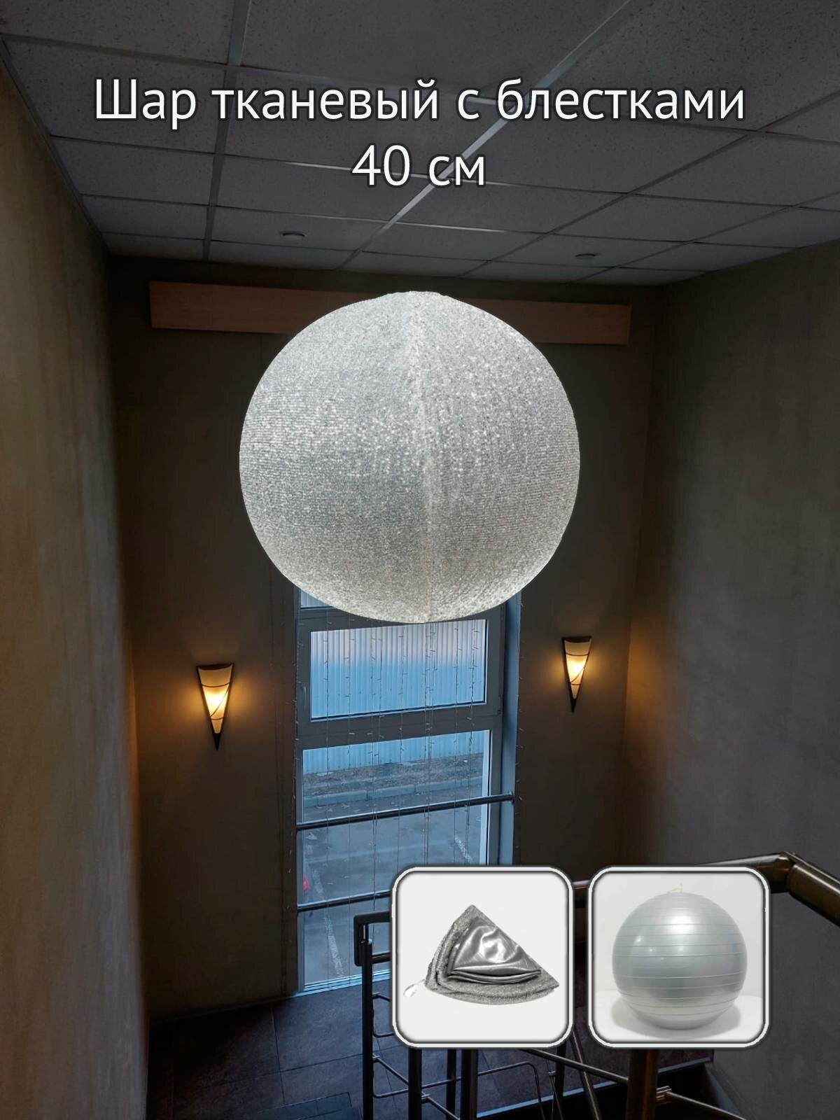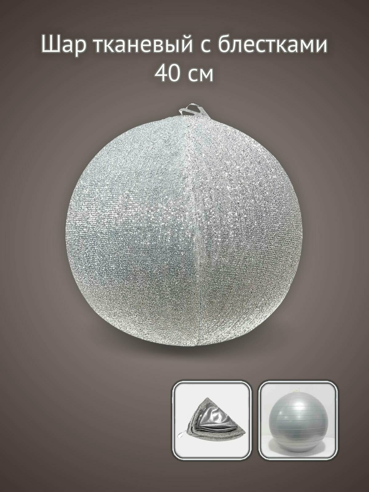 Шар тканевый с блестками, 40 см, серебристый