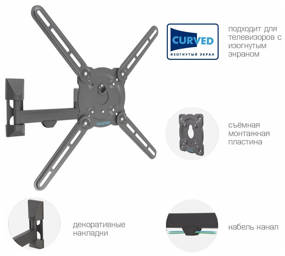Кронштейн для телевизора Kromax ATLANTIS-15 темно-серый 22"-65" макс.40кг настенный поворот и наклон 3 006 ₽