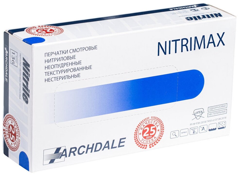 Перчатки Archdale NitriMAX, 50 пар, размер: M, цвет: голубой, 1 уп.