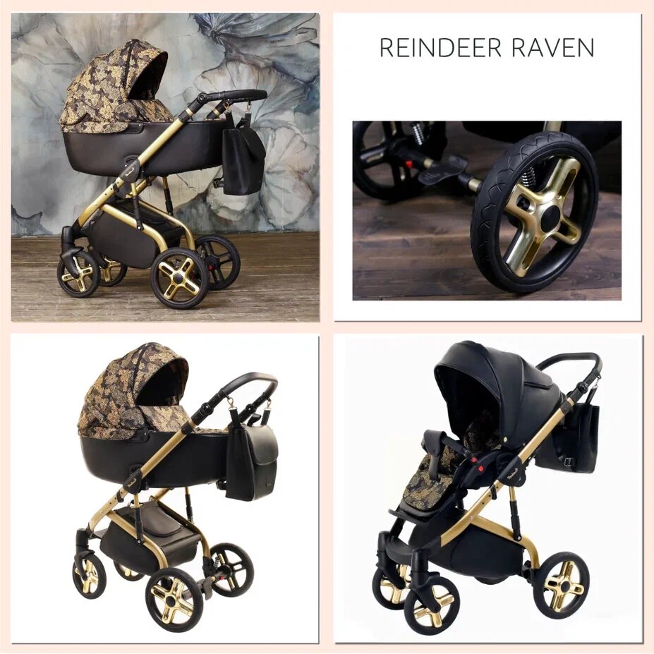 Отзывы на Коляска детская универсальная Reindeer Raven цвет черный+золотой RV8, 2 в 1 люлька+прогулочный блок, всесезон