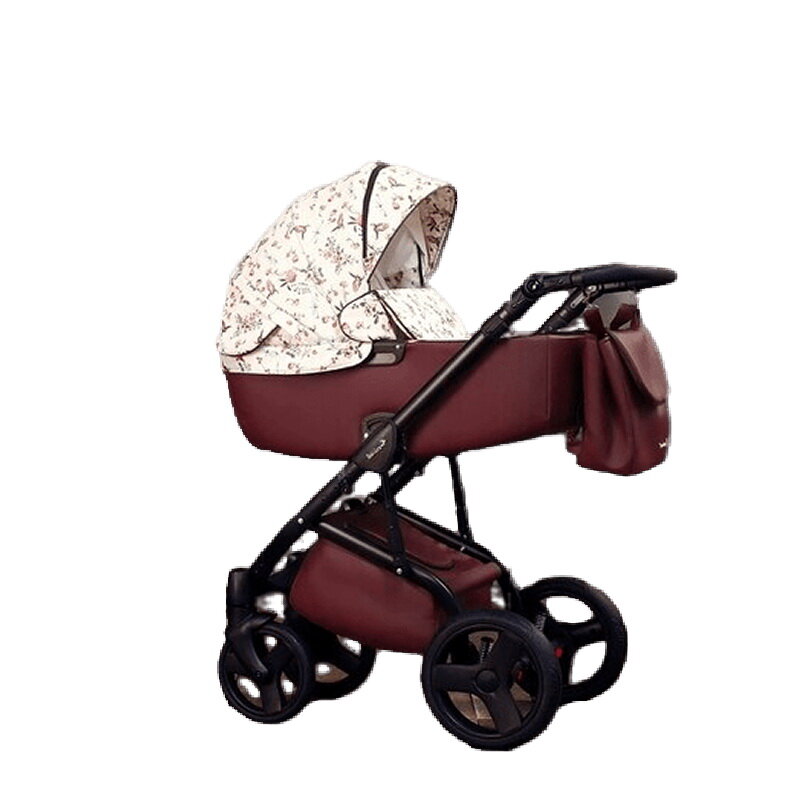 10 цен на Коляска универсальная Reindeer Raven цвет бордовый+белый RV11, 3в1 люлька+прогулочный блог+автокресло, всесезон
