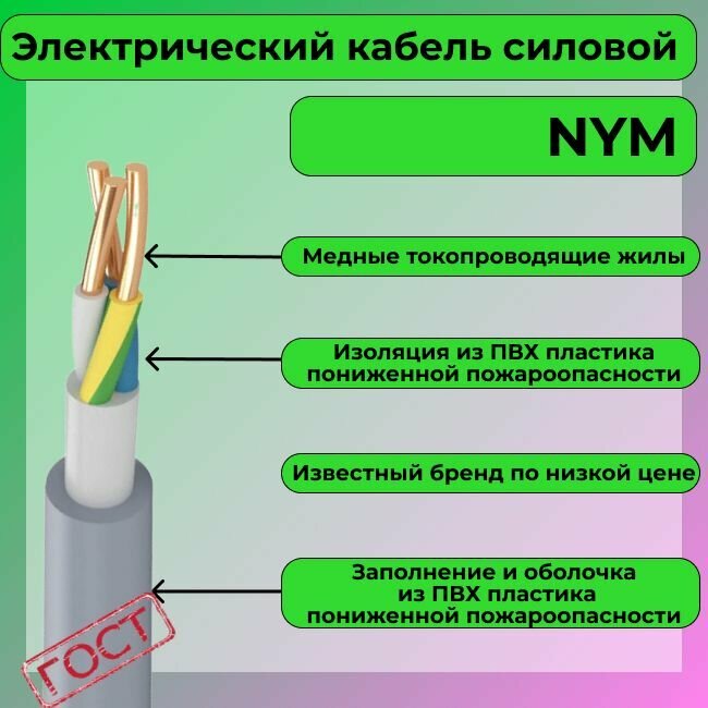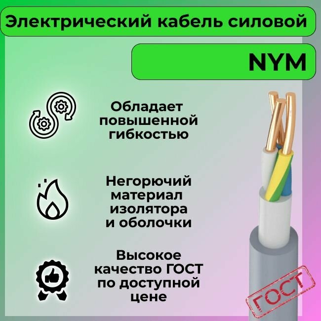 10 цен на Провод электрический/кабель ГОСТ NYM 3х6 (N,PE) - 25 м. Конкорд
