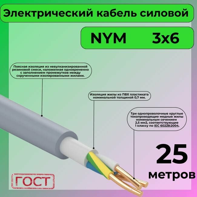 Провод электрический/кабель ГОСТ NYM 3х6 (N,PE) - 25 м. Конкорд информация: