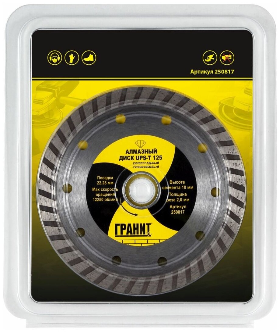 Диск алмазный Гранит по универсальный Турбо UPS-T-125х1,2х10 мм 250817 информация: