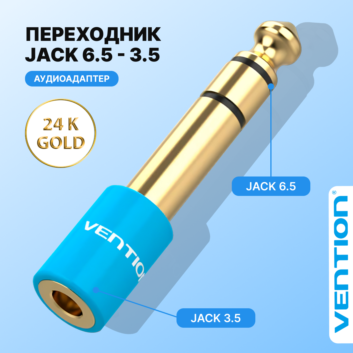 Переходник VENTION Jack 3.5 mm F/6.5 mm M, голубой