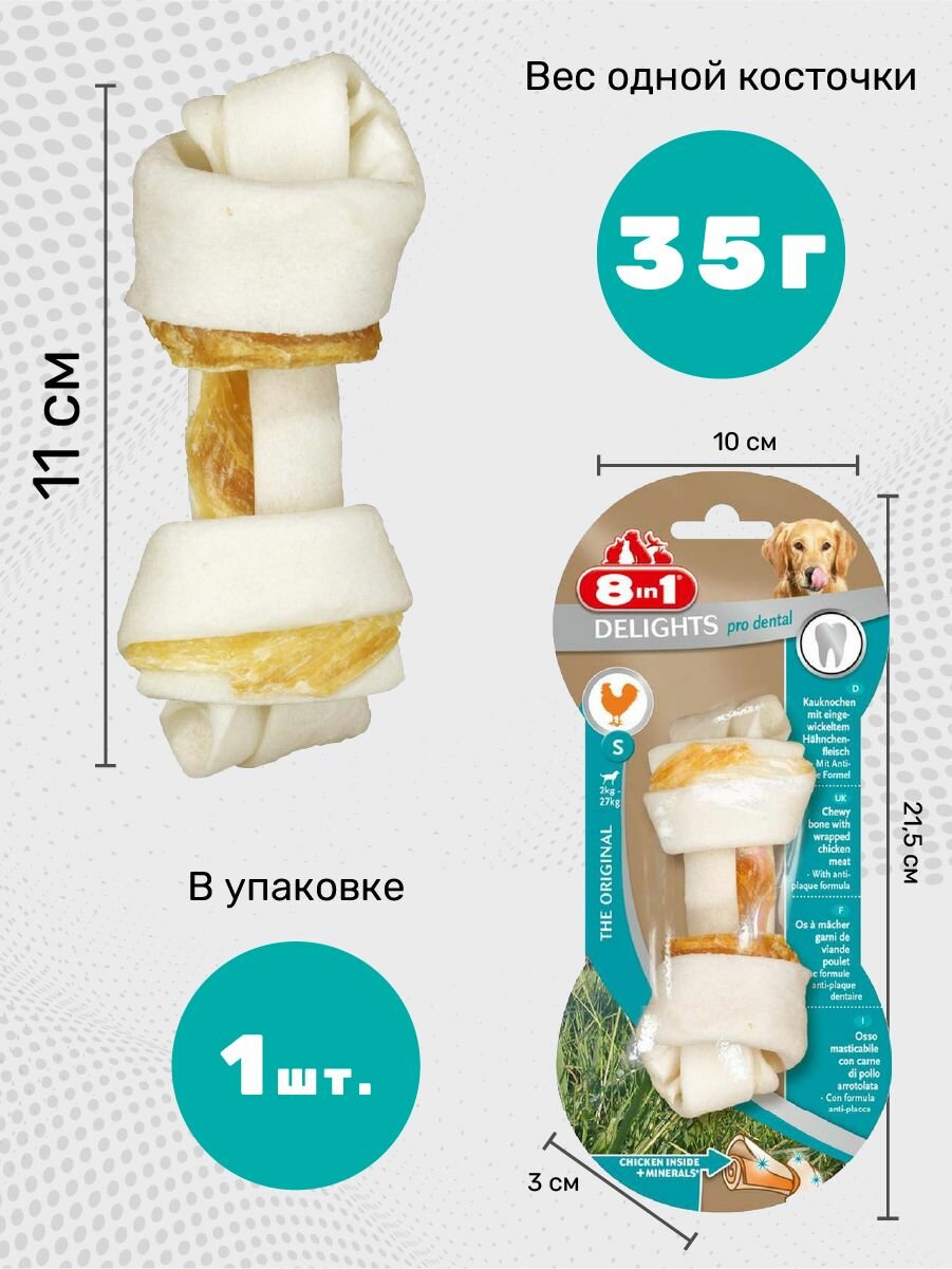 8in1 DENTAL DELIGHTS S косточка с куриным мясом для мелких и средних собак с минералами 11 см