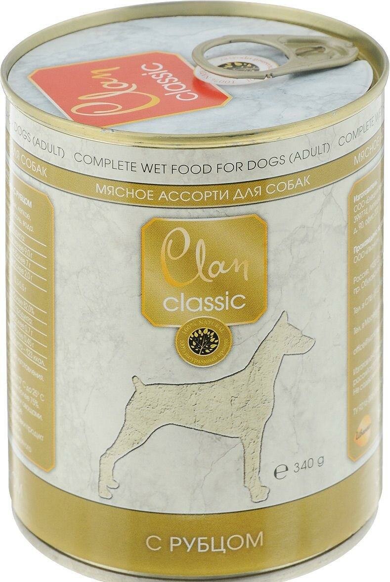 Влажный корм для собак CLAN Classic, мясное ассорти, рубец 12 шт. х 340 г
