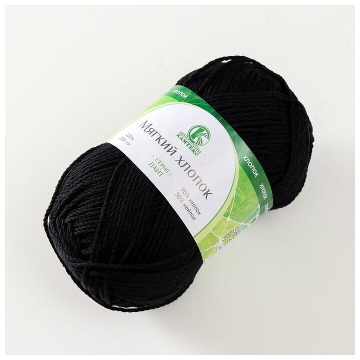 Пряжа "Мягкий хлопок" 70% хлопок, 30% нейлон 220м/100гр (003 чёрный), 1шт информация: