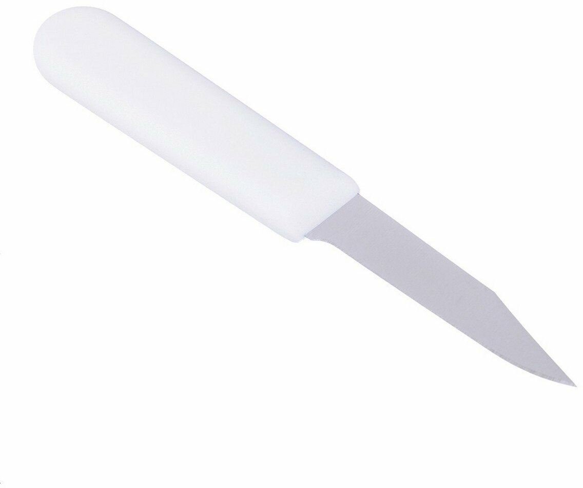 Нож для чистки овощей; сталь нержавейка,пластик; L=7.5см; металлический ,белый