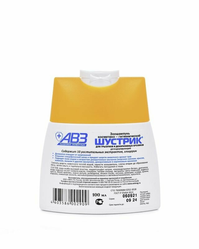 Шампунь АВЗ "шустрик" для грызунов дезодорирующий, 100мл