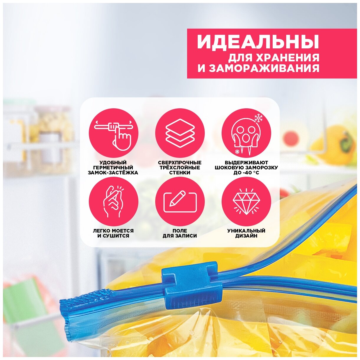 Пакеты для замораживания Paterra, со слайдером, 40 мкм, 18 x 18 x 2 см, 20 шт информация: