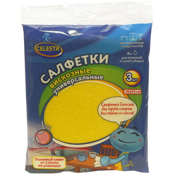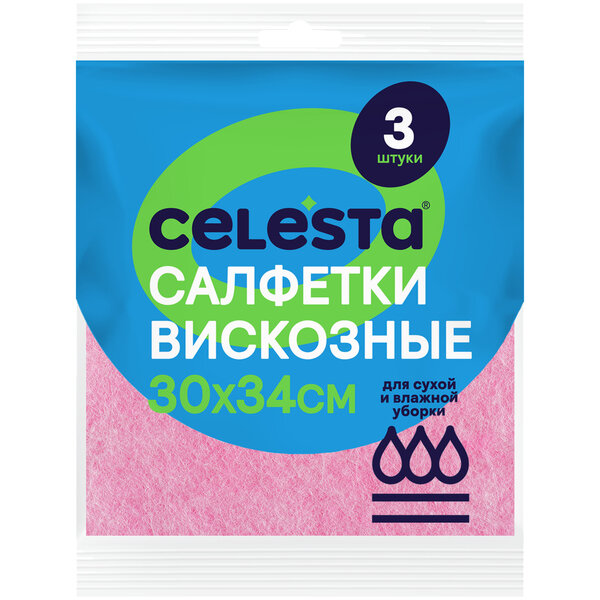 Салфетка для уборки Celesta вискозная, универсальная, 3 шт, 30х34 см