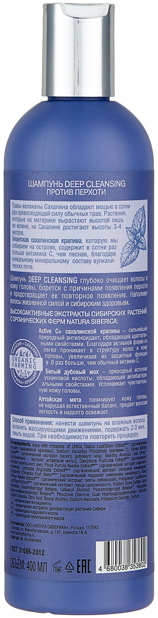 Натура сиберика Шампунь Deep Cleansing (пр перхоти) 400мл информация: