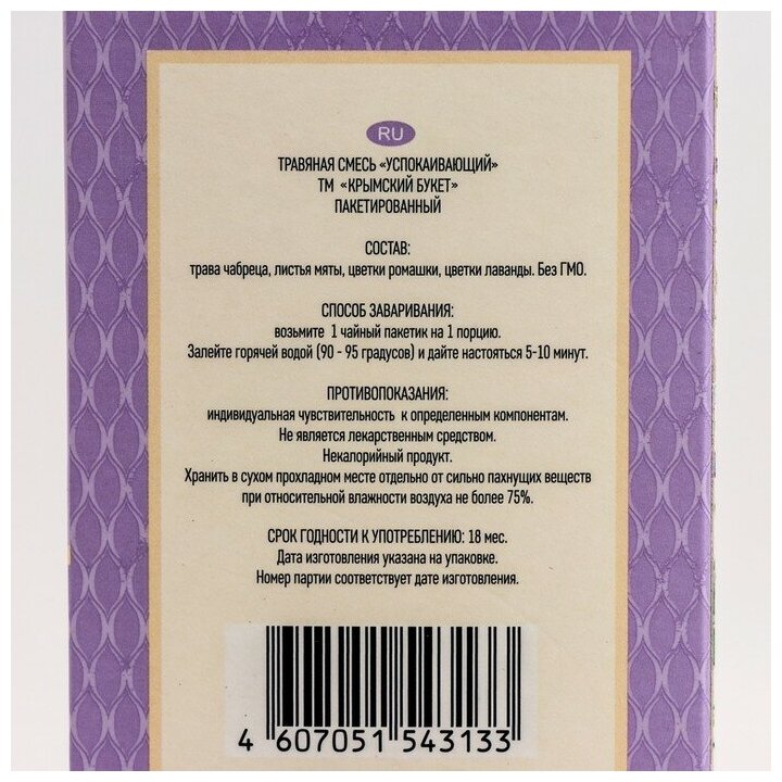 Чай травяной Крымский Букет Успокаивающий 20пак информация: