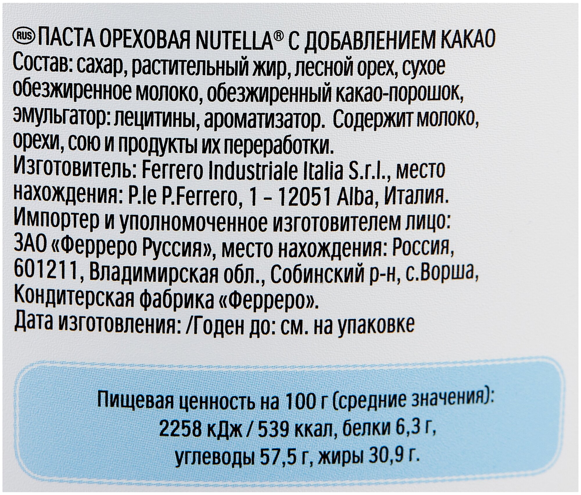 | Производитель | Nutella |