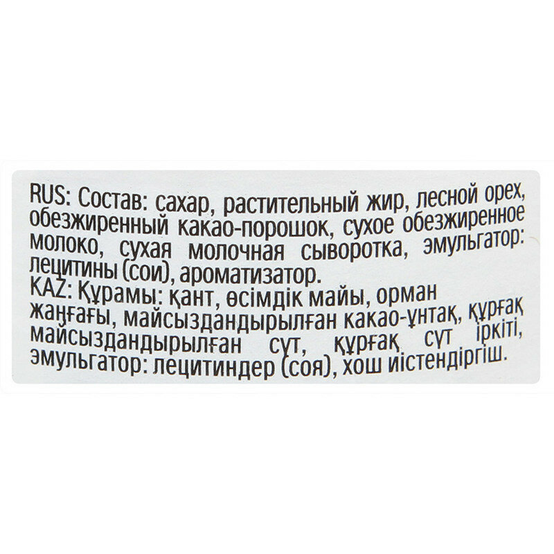| Состав | сахар; сухое обезжиренное молоко; лесной орех; обезжиренный какао-порошок |