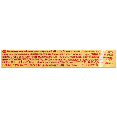 Напиток кофейный растворимый т.з. "MacCoffee Original" (3 в 1), м/уп 20г 10 пакетиков в упаковке