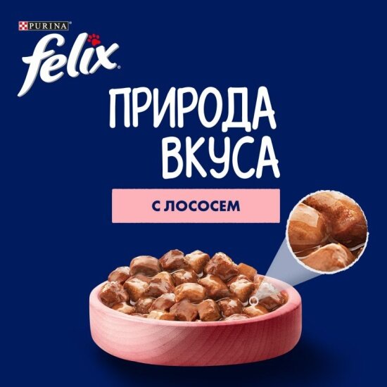 Влажный корм Феликс "Природа вкуса" для кошек 1-7 лет, лосось в соусе, 75 гр х 26шт