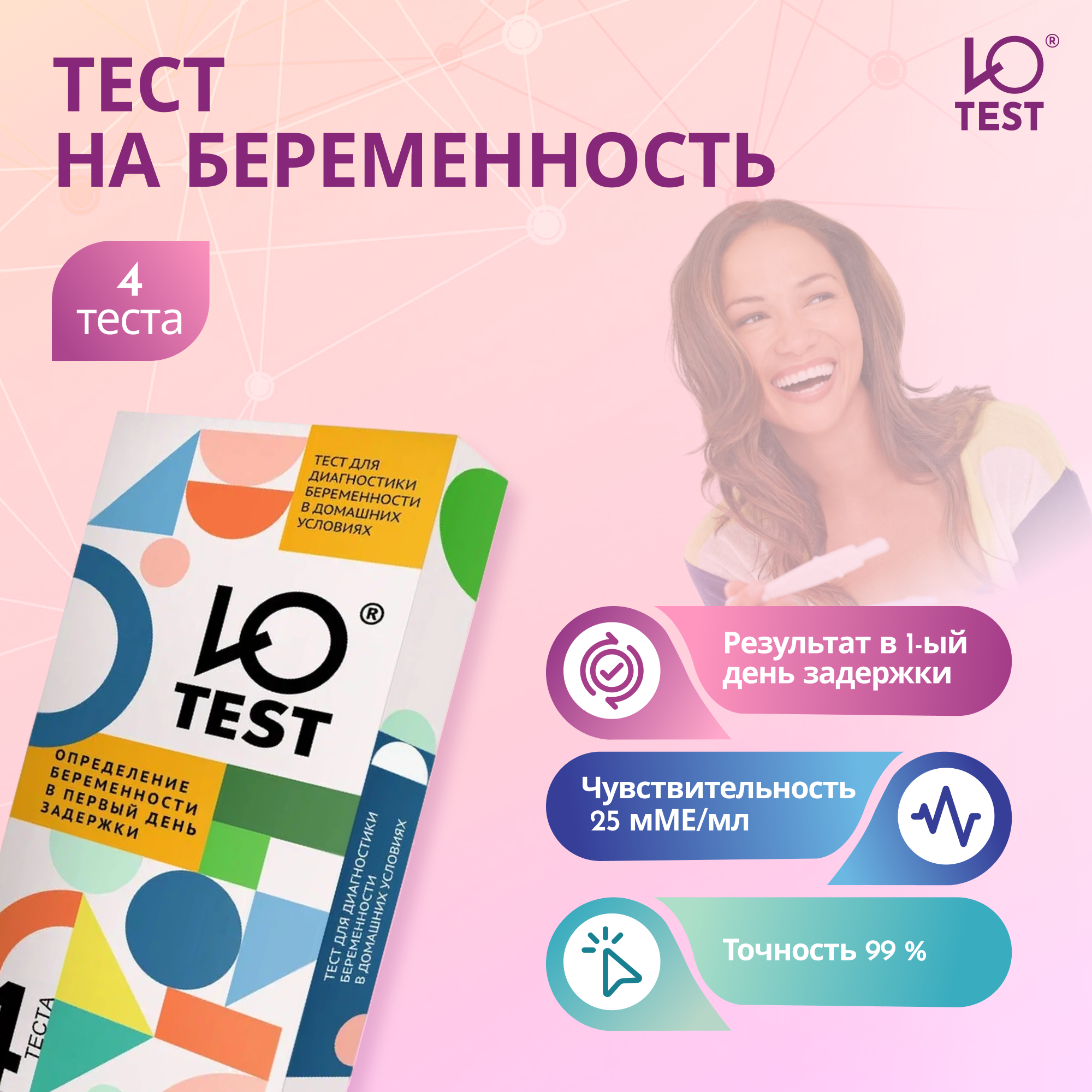 Ю-test тест для диагностики беременности 4 тест-полоски информация: