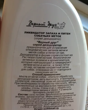 Отзывы на Верный Друг Ликвидатор запаха и пятен мочи и меток собак (спрей) 400мл