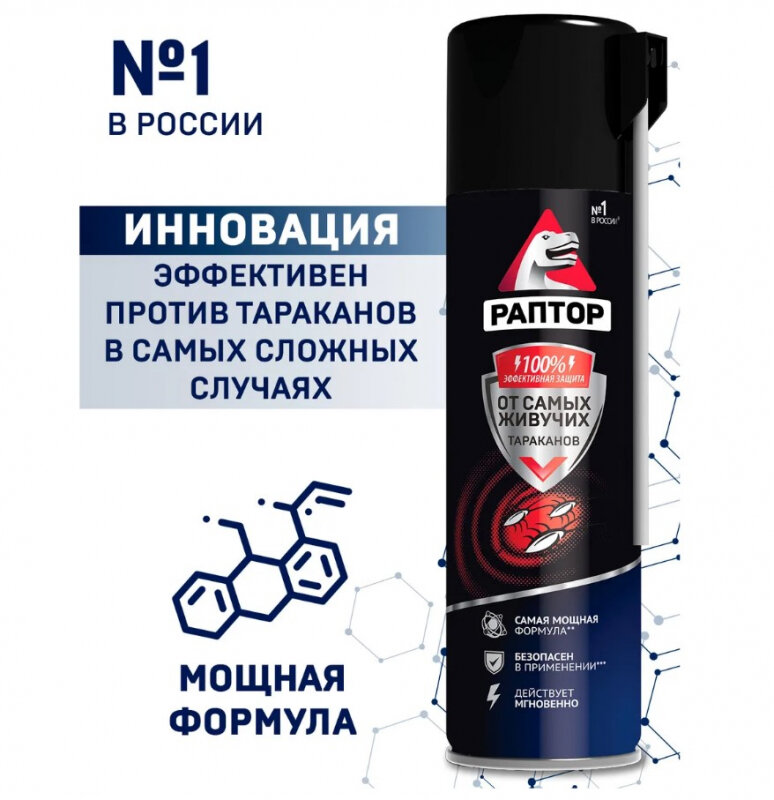 Аэрозоль от самых живучих резистентных тараканов, раптор, средство от тараканов, 275 мл