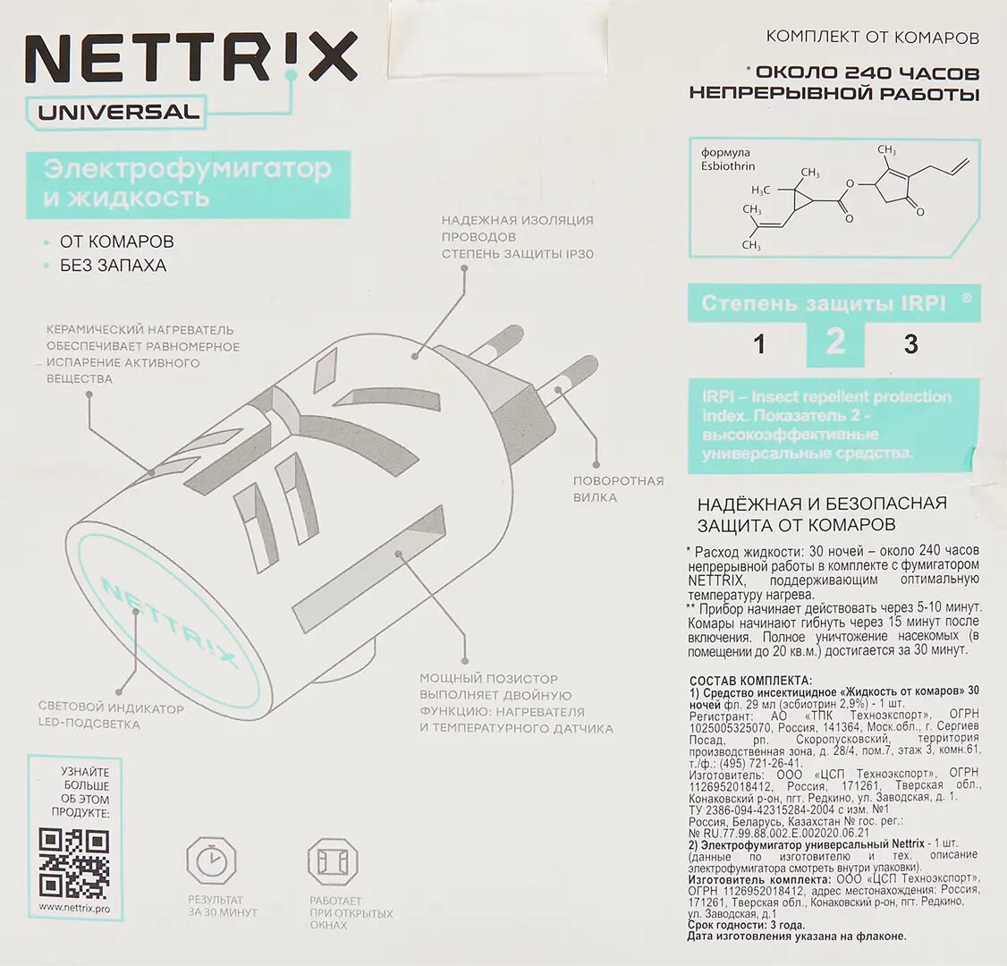Комплект Nettrix от комаров: фумигатор и жидкость на 30 ночей информация: