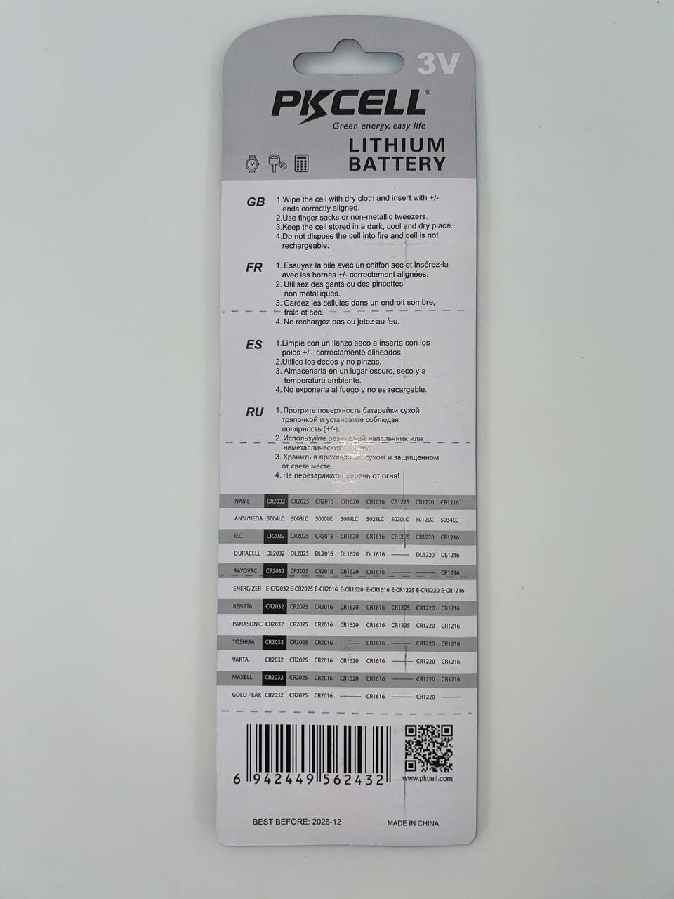 Батарейки PKCELL CR2032 литиевые (25 штук) информация: