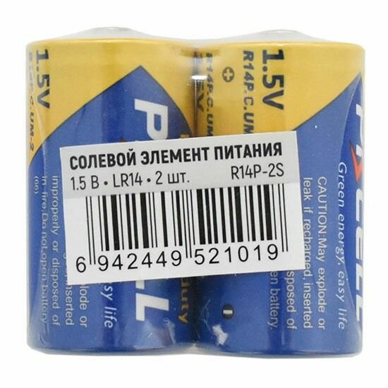 Солевой элемент питания PKCELL R14P-2B тип - C(R14) 2 штуки