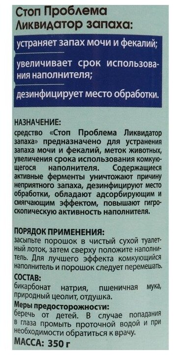 10 цен на Стоп проблема Ликвидатор запаха "Стоп проблема" для кошачьих туалетов 350 г
