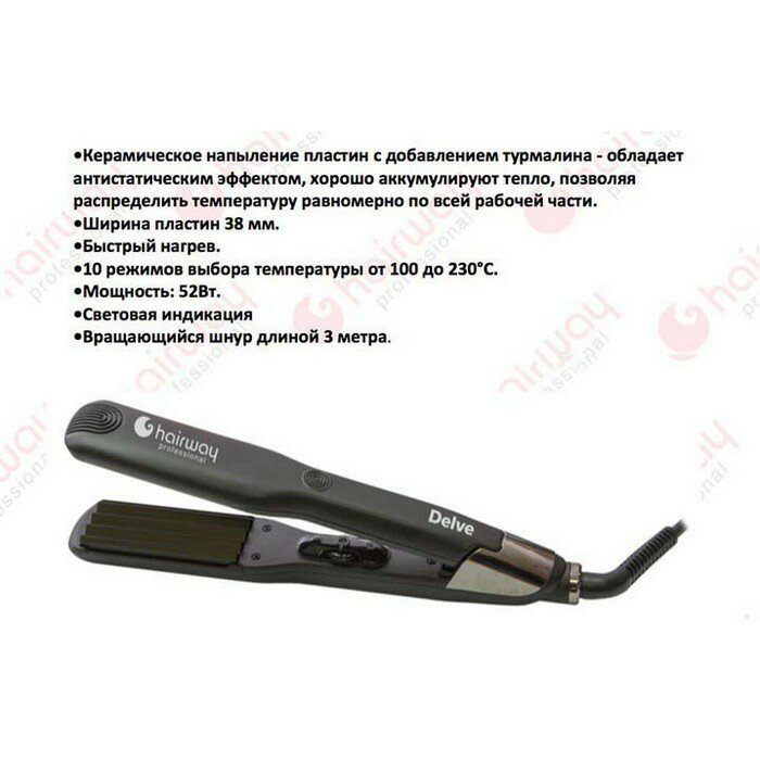 Щипцы-гофре для волос Hairway 04008 Delve крупное 52 Ватт 3 м. 100-230 C 6 432 ₽