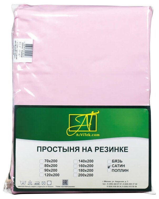 Простыня на резинке из сатина Alvitek ПР-СО-Р-140-РОЗ розовая 140х200х25 информация: