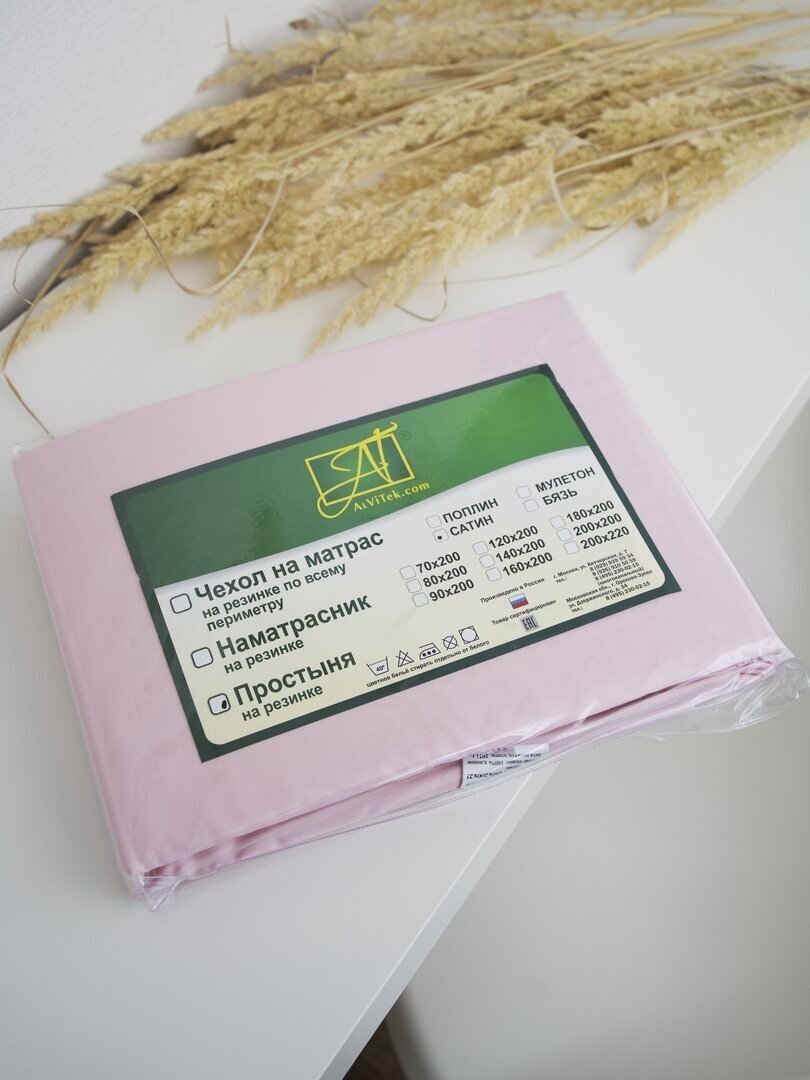 Простынь на резинке AlViTek (АльВиТек) 140х200х25, 1,5 спальная, Натяжная, Сатин, 100% хлопок, Цвет розовый, AALV-ПР-СО-Р-140-РОЗ