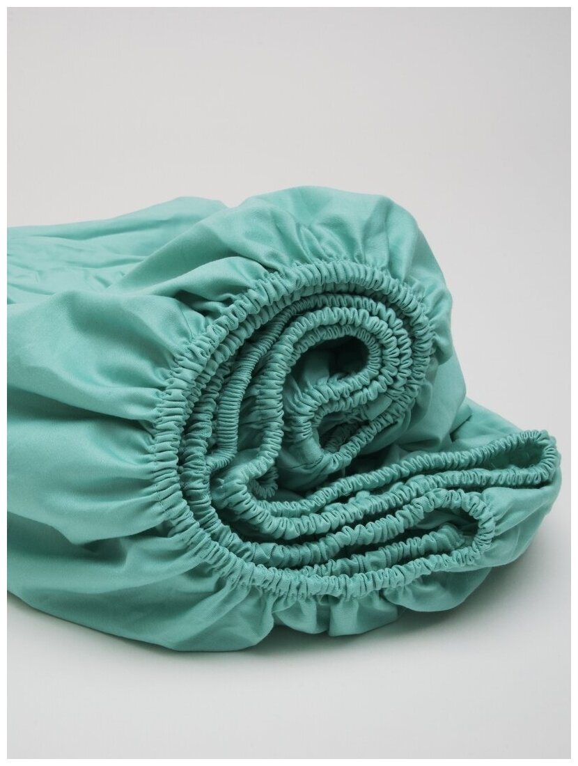Простыня на резинке из сатина; Мятный; Размер: 200 х 200