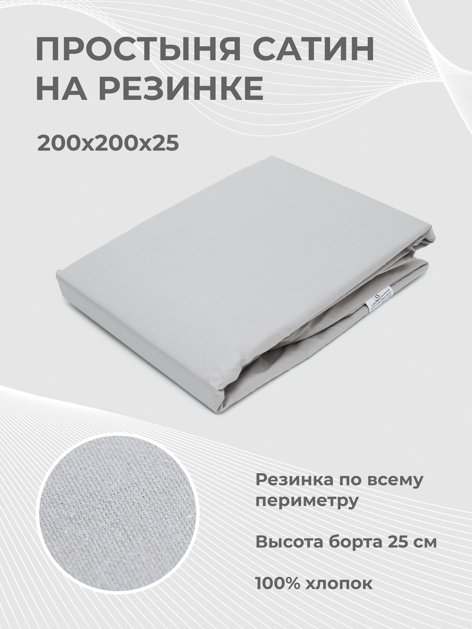 Простыня на резинке из сатина; Жемчужно-серая; , 200 х 200