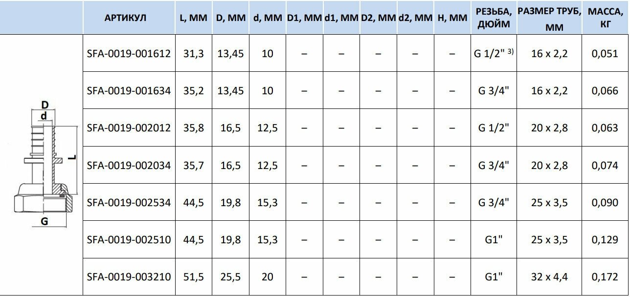 10 цен на SFA-0019-002534 STOUT Переходник с накидной гайкой 25xG 3/4" для труб из сшитого полиэтилена аксиальный