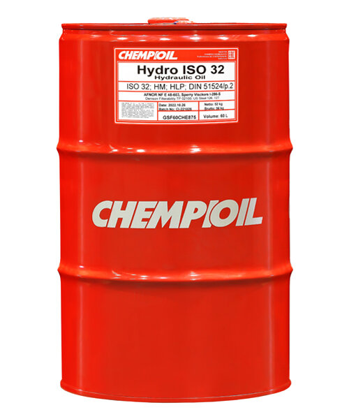 CHEMPIOIL CH210160E Hydro ISO 32, 60л (мин. гидравл. масло) HCV информация: