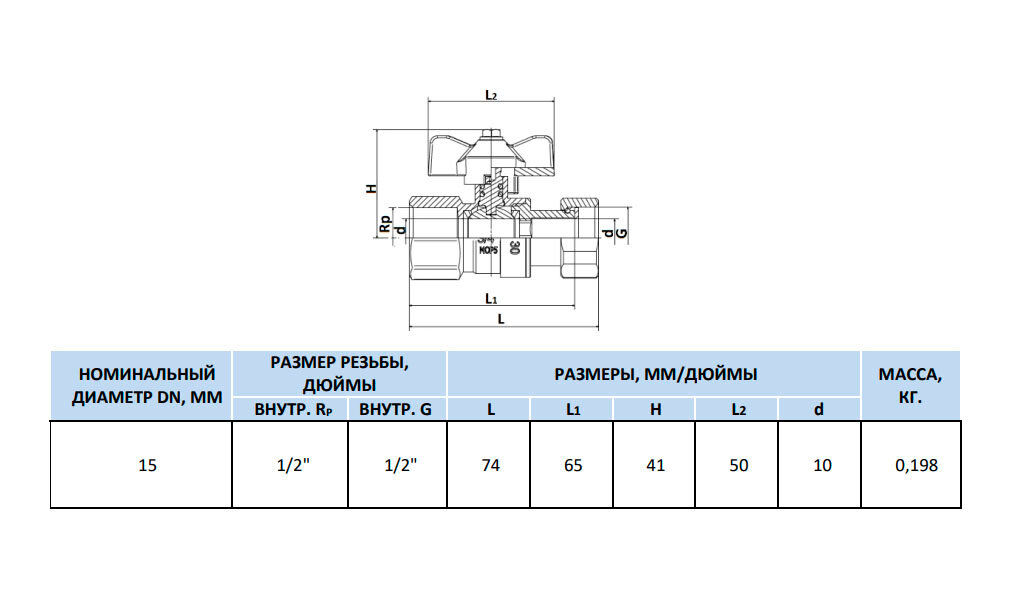 | Тип присоединения | муфтовый (ВР/ВР) |