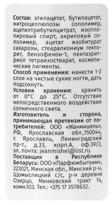 Лак для ногтей, JEANMISHEL, тон 110, 6 мл 6940660