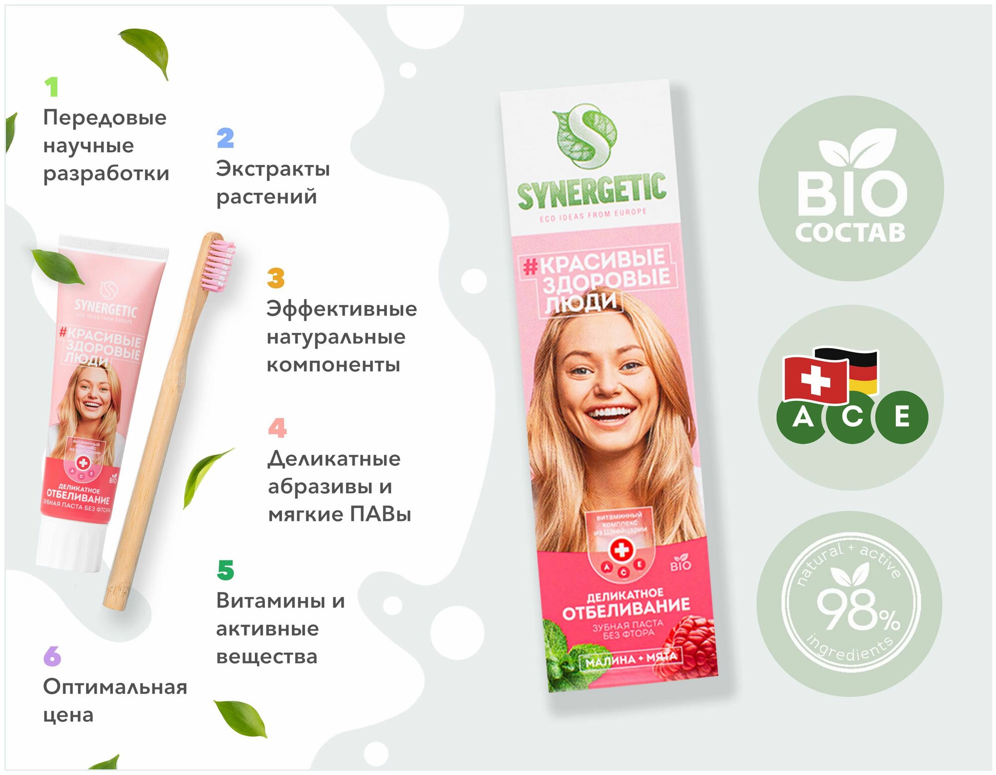 Зубная паста SYNERGETIC Деликатное отбеливание, 100 гр информация: