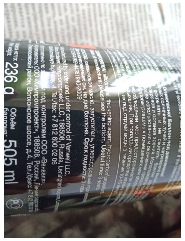 Отзывы на VENWELL VW-SL-044RU Смазка Venwell силиконовая аэрозоль 500 мл VW-SL-044RU