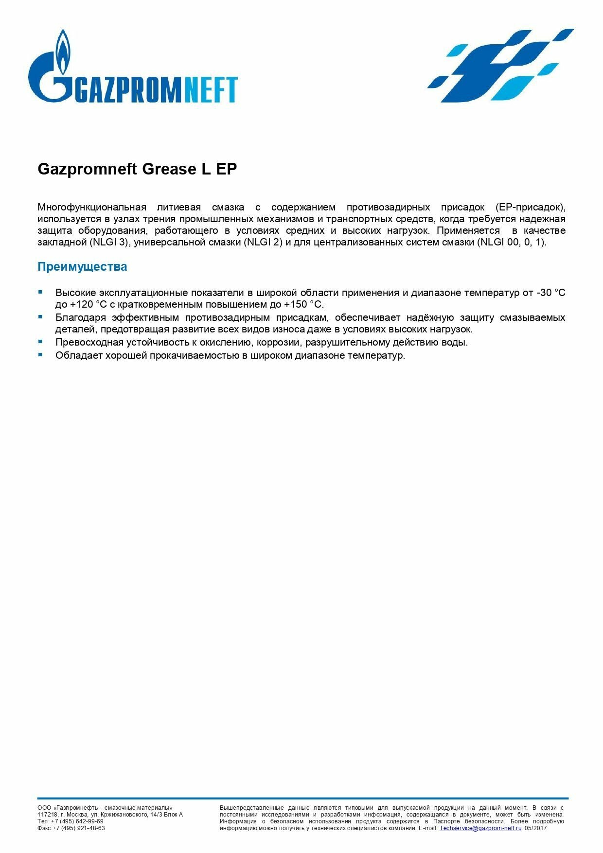 Смазка Gazpromneft Grease L EP 2, 400 гр информация: