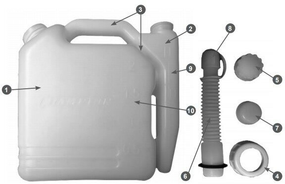 3ton/Канистра для топлива (бензина) 10 л 3ton PROFI в комплекте с крышкой и лейкой оливковая