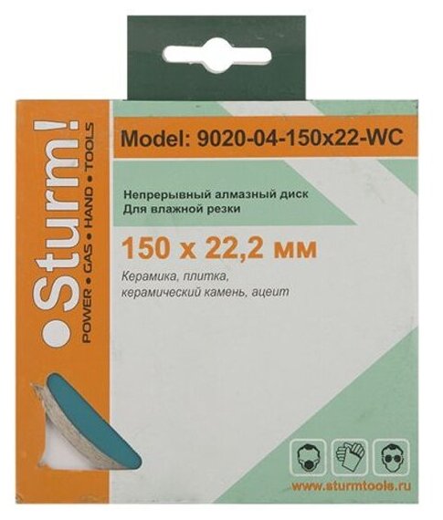 Отзывы на Диск алмазный сплошной, влажная резка, 150х22,2 мм Sturm 9020-04-150x22-WC