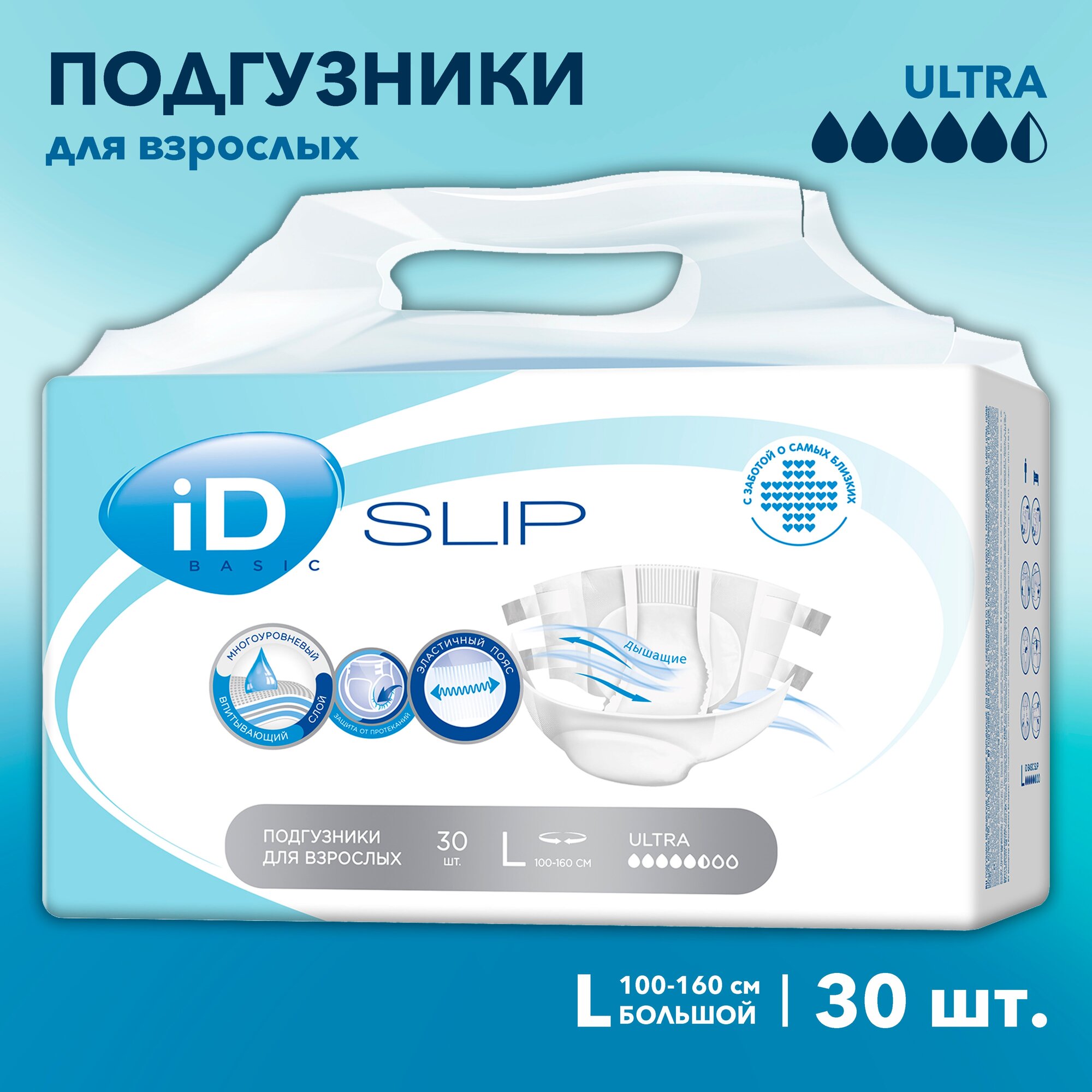Подгузники для взрослых iD SLIP BASIC, размер L, 30 шт, обхват талии 100-160 см, для средней степени недержания