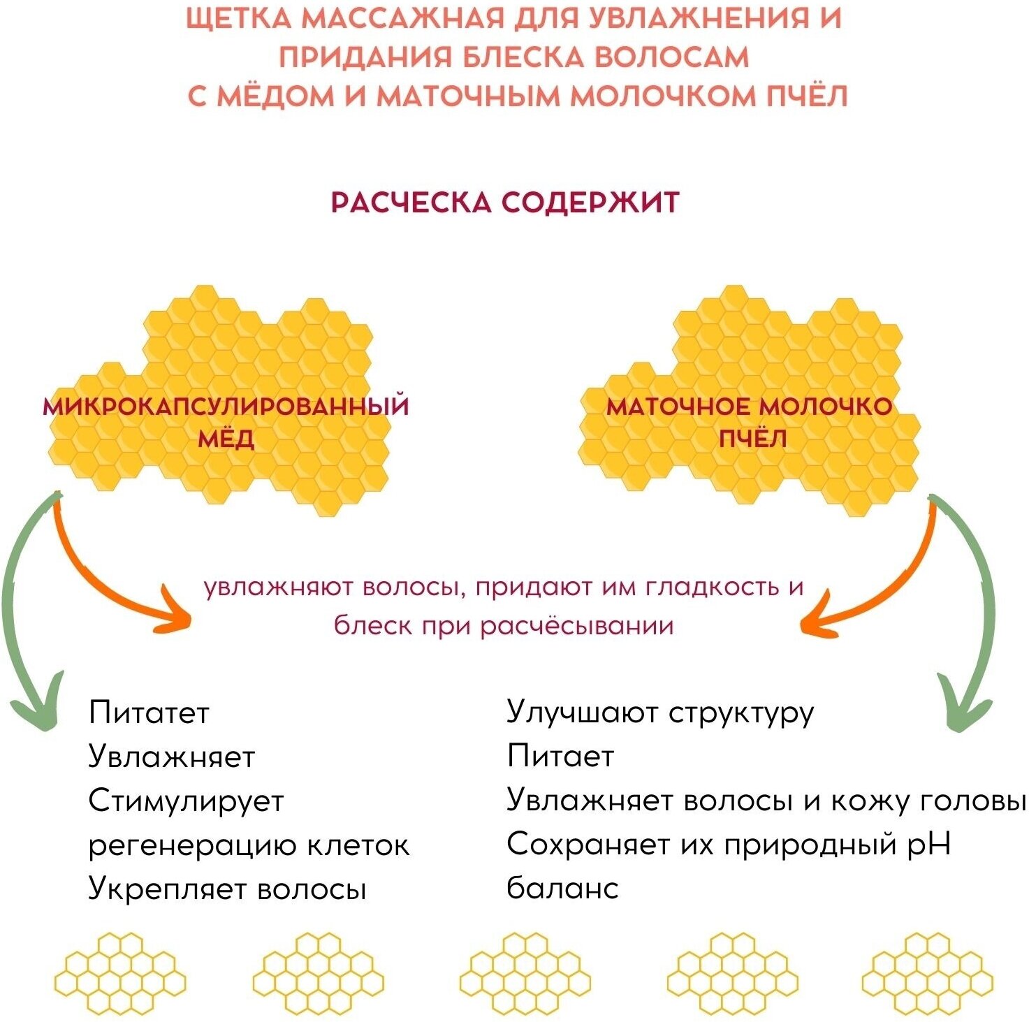 Honey brush щетка массажная для увлажнения и придания блеска волосам с мёдом и маточным молочком пчёл (круглая)