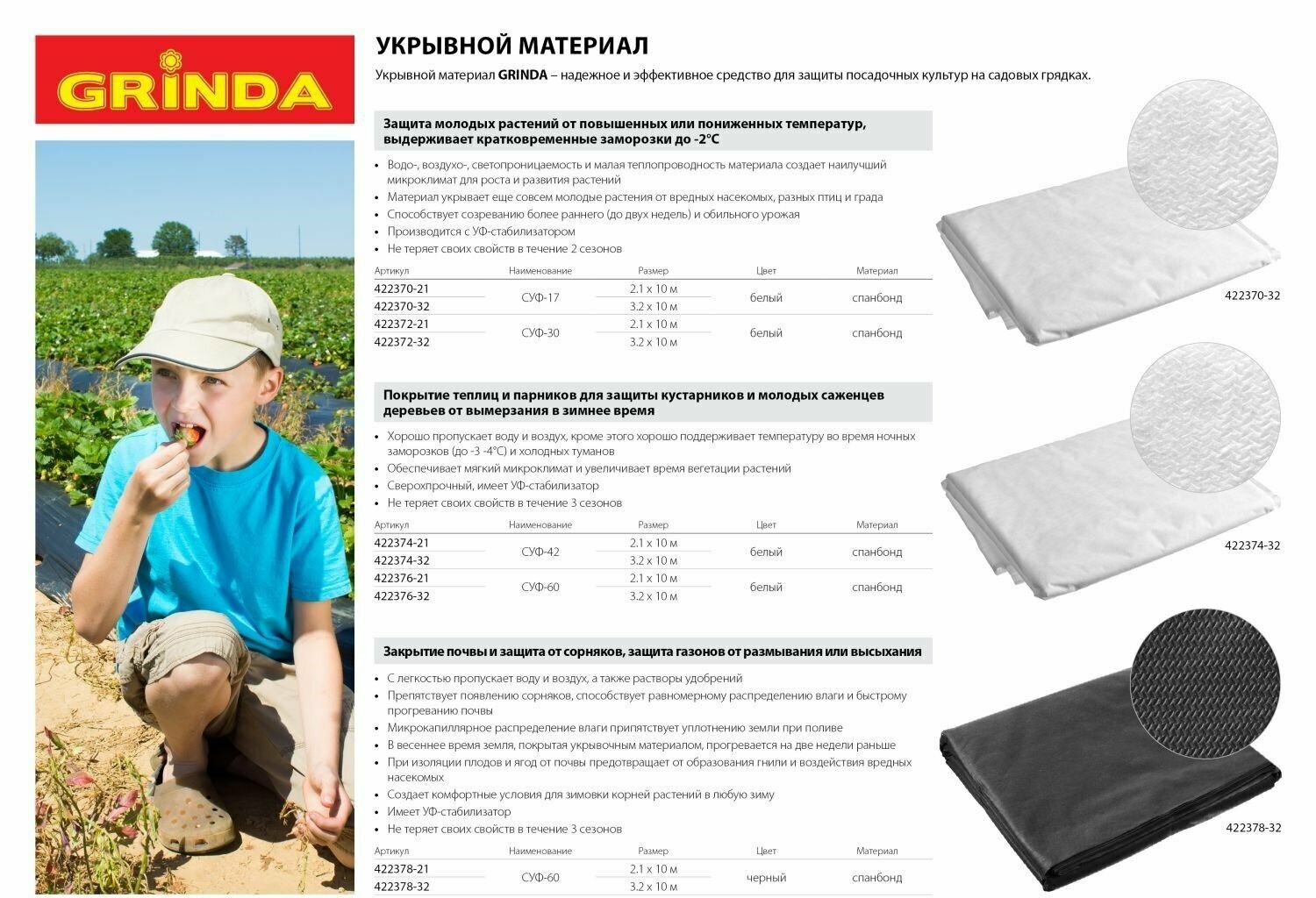 10 цен на Укрывной материал GRINDA, СУФ-17, белый, фасованый, ширина - 2,1м, длина - 10м {422370-21}