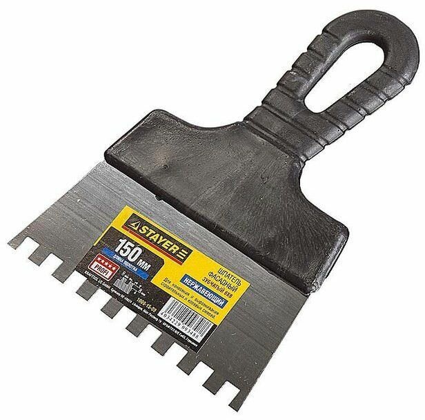 Отзывы на Фасадный зубчатый нержавеющий шпатель STAYER Inox-t 250мм зуб 8х8мм пластиковая ручка (1009-25-08)